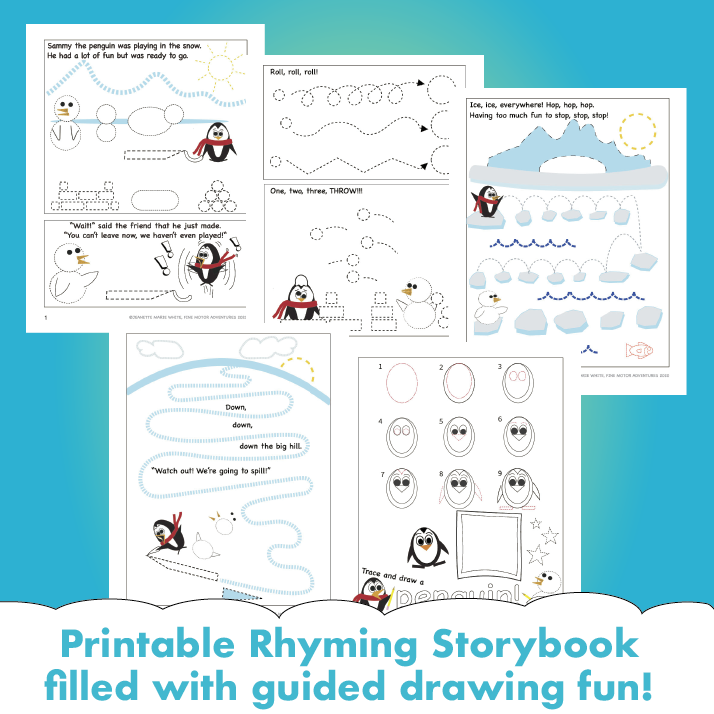 Fine Motor Adventures newest release, Sammy Makes a Friend, is a silly rhyming adventure following a penguin in Antarctica who makes a new friend from snow. When his new friend comes to life, Sammy is thrilled and the adventure and pencil strokes take off! Written in a fun comic book style, kids will love to read, illustrate and laugh their way through this book about friendship. 2 pages of learning opportunities includes fun facts about penguins and Antarctica. Bonus activities continue the fun and help strengthen fine motor skills. Designed for the most reluctant or eager illustrators.